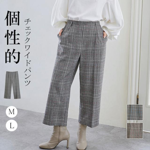 1000円offクーポン配布中 グレンチェック レディース ガウチョパンツ クロップドワイドパンツ 個性的 ヴィンテージ M L 小尻 ポケッの通販はau Pay マーケット Karei かれい